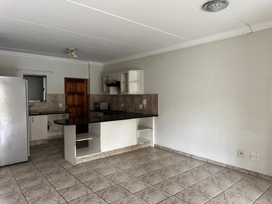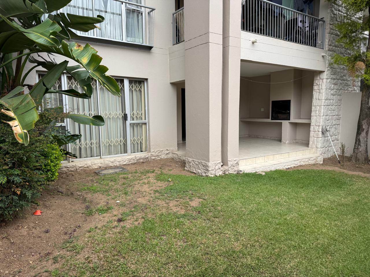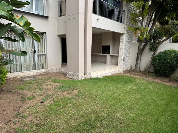The sliding door leads to a spacious covered patio with built in braai and a secure garden (NOT PET FRIENDLY)