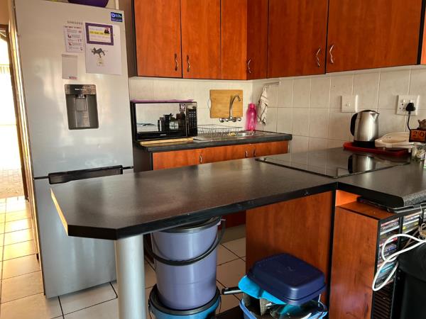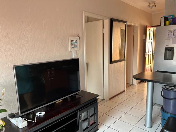 Step into an open plan living area flowing into a fully fitted kitchen- perfect for cooking up your favourites. Both bedrooms are comfortably sized with built in cupboards. The bathroom is neat and offers a bath tub with shower.