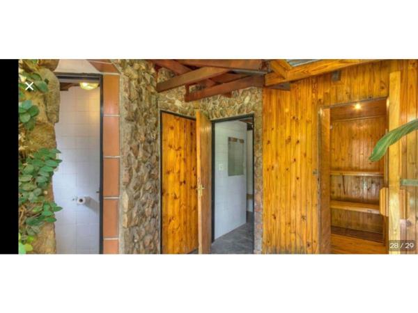 The main residence includes four spacious bedrooms and two well-appointed bathrooms, providing comfort and privacy for the entire family. The inviting lounge seamlessly connects to the kitchen, elegantly divided by a charming fireplace that adds warmth and ambiance to your living space during chilly winter evenings.