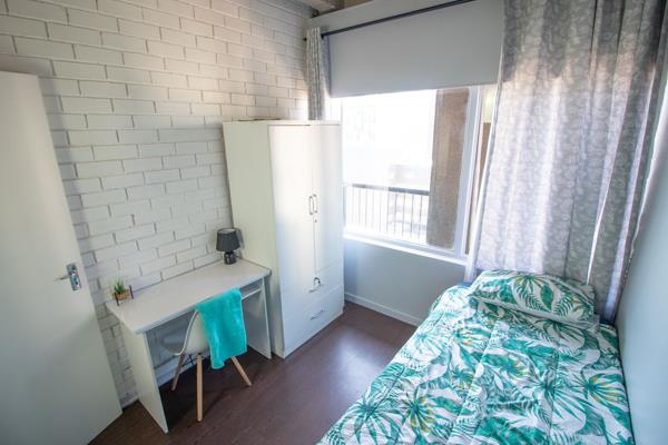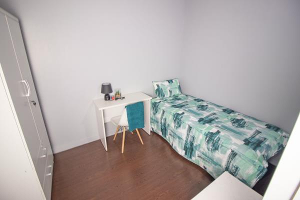 Each bedroom is furnished with a bed, desk, chair, and wardrobe. The kitchen has built-in cupboards has a washing machine, fridge, and microwave supplied to the tenants.