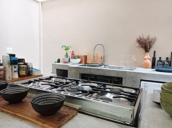 Modern kitchen with concrete counters