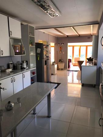 The well-designed kitchen is fitted with granite countertops and offers ample storage space. Added conveniences include air conditioners, two solar geysers, JoJo tanks, and a water filtration system.
