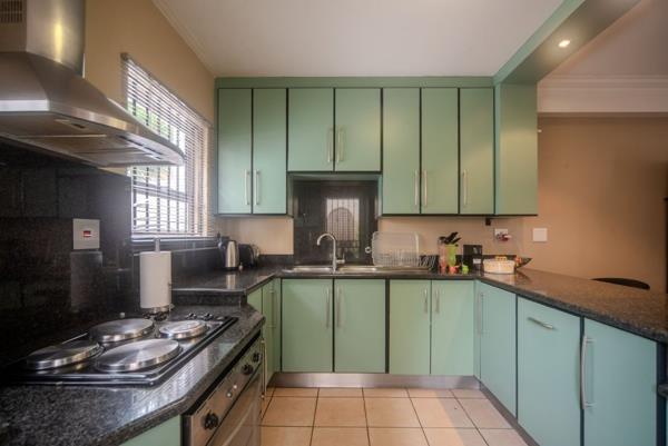 The exterior presents a clean, contemporary faade surrounded by a neatly maintained garden an ideal outdoor space for relaxing or hosting. A sparkling pool and well-positioned braai area add to the homes entertainment appeal. Parking is generous, with a rare three-car garage and additional visitor parking within the estate.