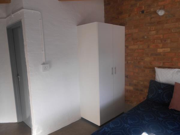 Experience vibrant metropolitan living in this modern studio apartment located in Maboneng, Johannesburg. This 23sqm unit offers a functional living and sleeping area, complemented by an exposed brick accent wall and a clean white wardrobe. The compact kitchenette features modern appliances, a dining area, and a well-appointed bathroom. Residents benefit from communal amenities including landscaped courtyards, paved pathways, and a small swimming pool. The property showcases a distinct architectural design with circular windows, enhanced by 24-hour security, CCTV, and a dedicated security post for ultimate peace of mind.
