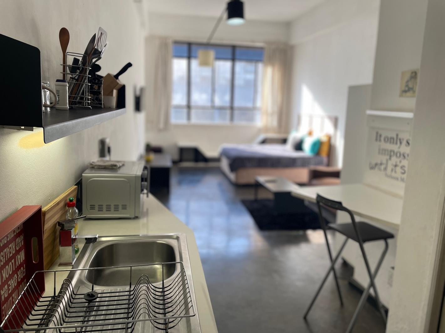 This is a North facing industrial style Bachelor apartment, Ideally suited for young live in professional or student. Maboneng is a rejuvenation of the Newtown CBD and a creative hub. It offers hip and happening vibes, with a vibrant CBD night-life. Close to transport routes and amenities. Convenience of being close to JHB CBD for a short commute to work.