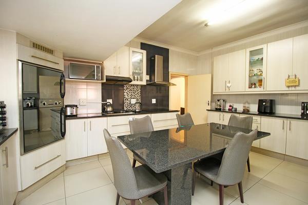 This home lends itself to the growing family, with its endless possibilities. Tiled throughout it comprises ent hall leading to sunny, north facing lounge which opens to a dining room. Another room could be used as a playroom or tv room. The kitchen is a chefs delight spacious and well fitted with a separate scullery. It has granite tops and a fitted granite table for everyday dining, both an electric and gas hob and double eye level oven. The kitchen open to another room which connects to the cottage downstairs.