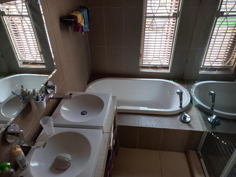 Features include: 2 bedrooms, BICs, 2 bathrooms, MES, entrance hall with double wooden doors leading to lounge, fireplace, separate dining room, large kitchen with wooden cupboards, pantry, bay windows, pressed ceilings, wooden floors, alarm, electric fence, burglar bars, security gate, double garage, double carport, electric motor gate, driveway, paveway, brick & palisade front fence, solar geyser, pool, front garden, cottage with bedroom, kitchenette & bathroom, outside toilet & shower, built-in braai.