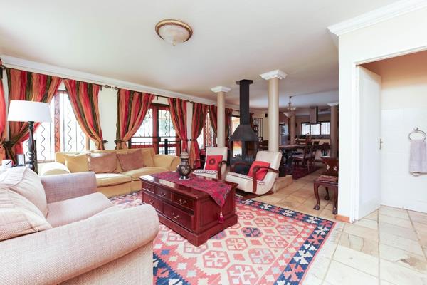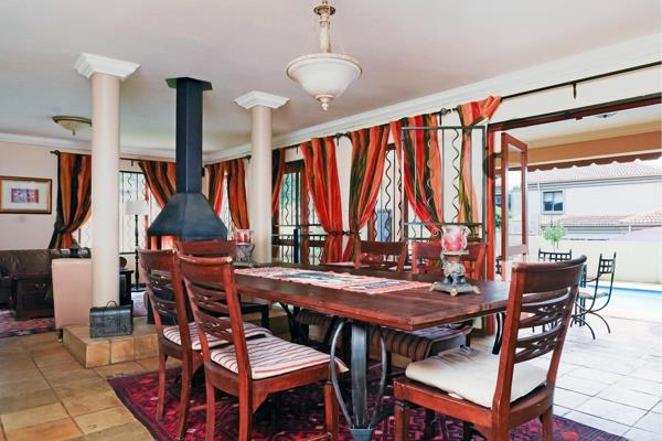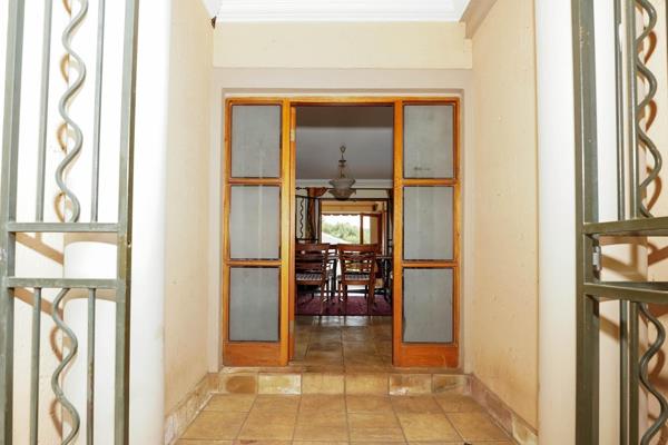 From the street, a double garage behind automated gates is visible. Plenty of additional paved parking to the left of the house. The front door is centre front of the building as you enter the Italian style portico, ready to reveal the timeless elegant interior. as you enter into the living area, you are able to see right through to the other side of the property, beautiful wooden doors opening out to the back patio. An open plan dynamic with a kitchen to the right, dining area and large lounge to the left.
