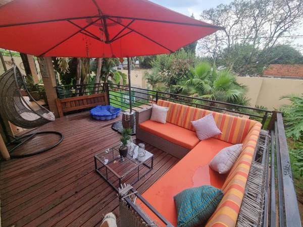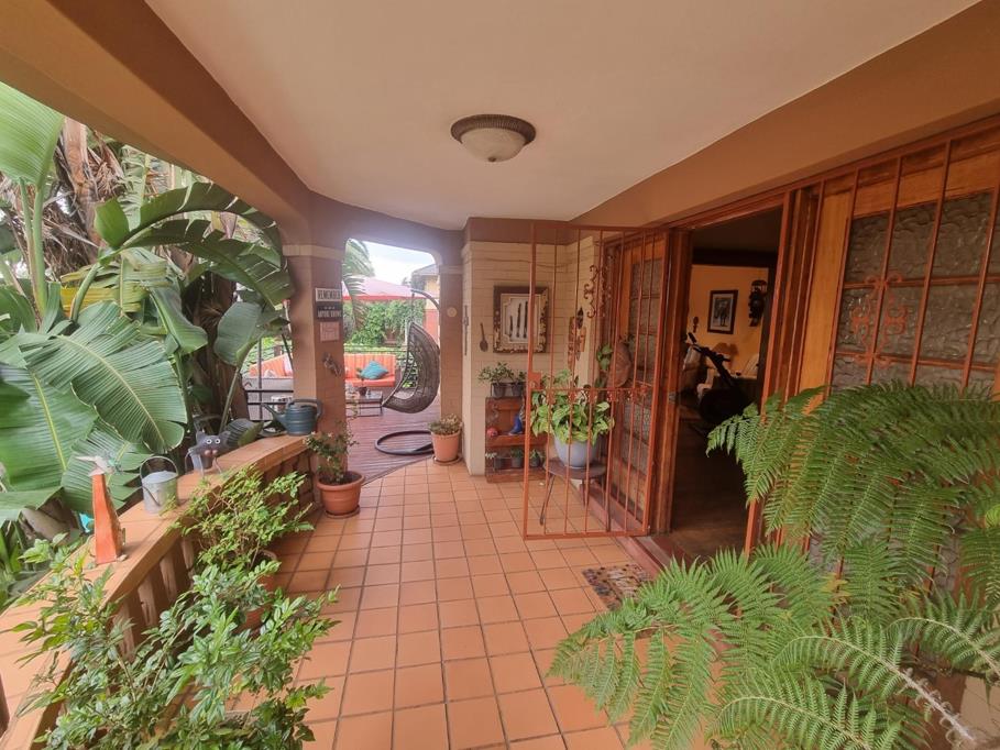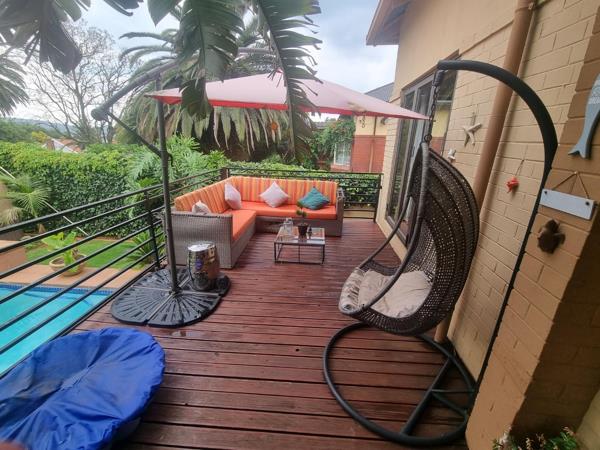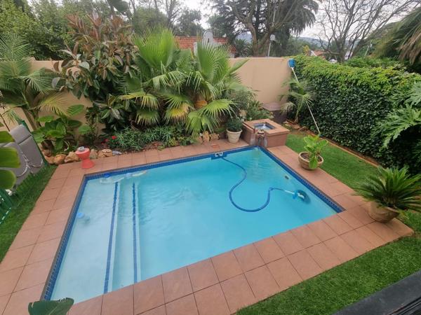 The home consists of a welcoming covered patio leading into the entrance hall / dining room which leads into the lounge area with aluminium stacker doors which open out onto the lovely deck area overlooking the sun splashed pool , There is also a lovely tv room / entertainment room / study , kitchen , scullery plus 3 lovely sized bedrooms of which the main bedroom has a lovely deck patio plus 2 bathrooms .