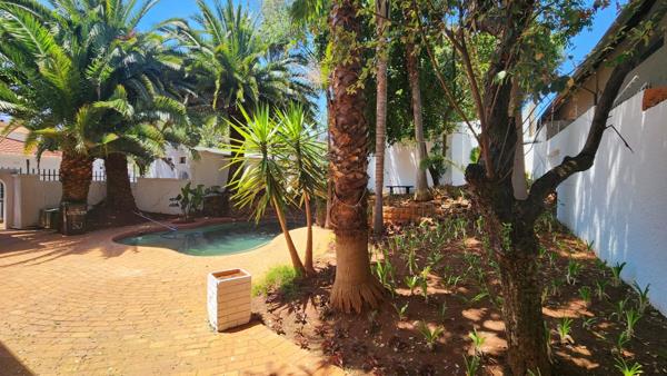 The home has a lovely pool and braai area and is nicely secured with highwalls offering total privacy , there is also a garage .