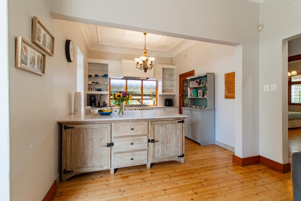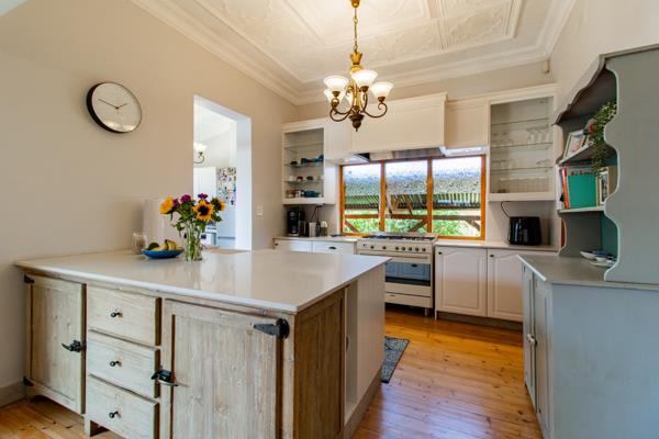 The entrance room, adorned with a gas heater, sets the tone for the rest of the home. The open-plan layout seamlessly connects the family room to the gourmet kitchen, creating a spacious and inviting living area. The modern kitchen, a chef''s dream, boasts a center island with a porcelain prep basin and filtered water, a Smeg gas stove with an industrial extractor fan, and a separate scullery/laundry.