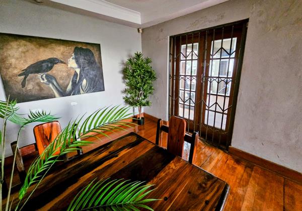 As you enter, you are welcomed by a magnificent lounge that seamlessly extends to a patio deckperfect for relaxation, entertaining, or simply soaking in the beauty of the lush trees and manicured garden. The open-plan dining area flows effortlessly into a spacious kitchen, which features ample cabinetry, a gas stove, and an electric oven.