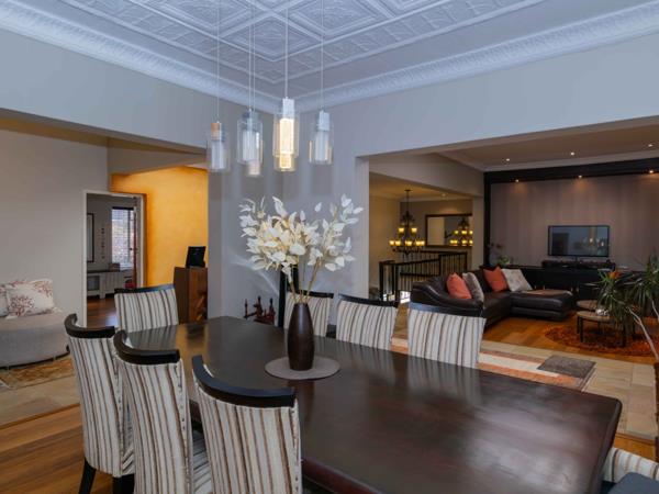 The chefs kitchen is a showpiece, featuring premium appliances, generous workspace, a scullery, and laundry crafted for both grand dinner parties and everyday inspiration. Whether its dinner in the elegant dining room or sundowners on the patio overlooking Johannesburgs skyline, every space is designed to impress.