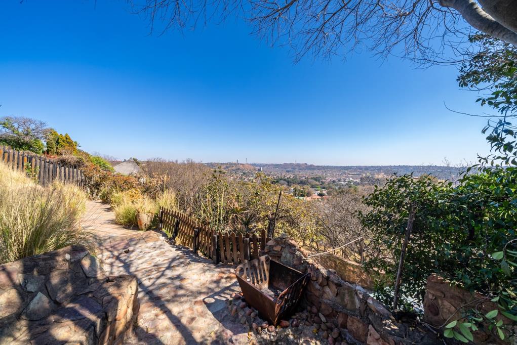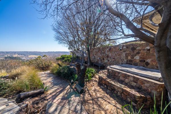 The home boasts three well-appointed bedrooms. The master bedroom offers large north-facing windows, ample cupboard space, and an air-conditioning unit. With its Bushveld charm and natural textures, the room feels like a private escape, complete with a spacious en-suite bathroom featuring both bath and shower. The second bedroom also offers an aircon unit, its own bathroom with a shower, and beautiful high pressed ceilings. The third bedroom features high ceilings, ample cupboard space, and north-facing windows. A full family bathroom with bath and shower serves the household.