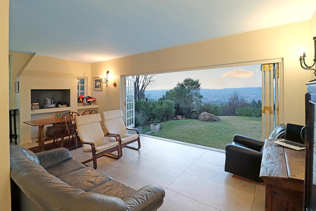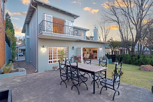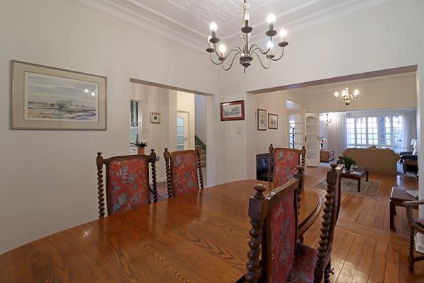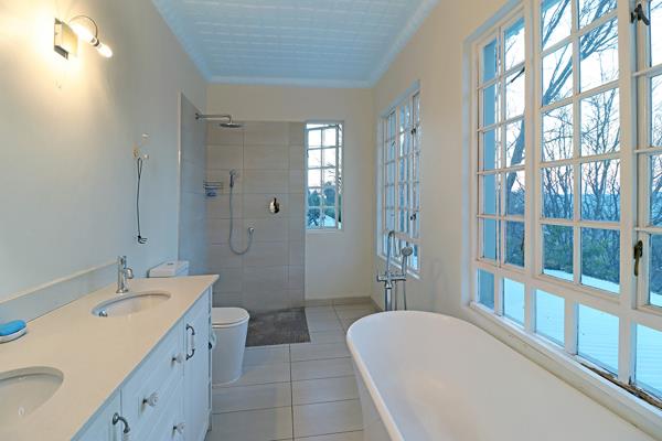 A welcoming entrance hall leads you to a spacious family room with stacking doors that open seamlessly to the garden, giving an indoor/ outdoor feel. There are two smaller lounges and a dining room. The contemporary kitchen has a gas stove, is well appointed with a separate scullery which fits 3 appliances ideal for the growing family. Downstairs is a guest loo, and storage under the stairs.
