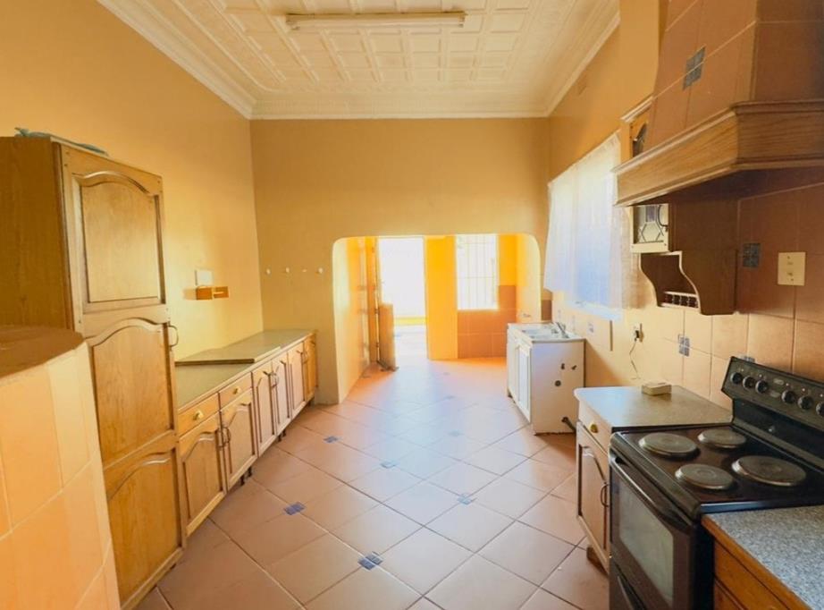 This Kensington residence presents a classic aesthetic with its red brick and cream exterior, complemented by a covered porch featuring stone columns and an arched entrance. Mature trees enhance the established landscaping, contributing to its suburban charm. An entrance hall leads to a lounge, dining room, and family TV room. The spacious kitchen features extensive wooden cabinetry, tiled flooring, and a distinctive pressed ceiling, complemented by a pantry, laundry, and a fireplace. The property offers three bedrooms and two bathrooms, one en-suite. Original timber floorboards and decorative pressed ceilings in certain areas add character and heritage. Externally, a private inground swimming pool, surrounded by brick paving, is ideal for leisure. The 495.00 sqm erf includes a garden, paving, a driveway, and five open parking spaces. Security is enhanced by an access gate, security gate, and burglar bars. A flatlet offers additional accommodation potential. Situated in suburban Kensington, Johannesburg, this property offers convenient access to local amenities and transport links.