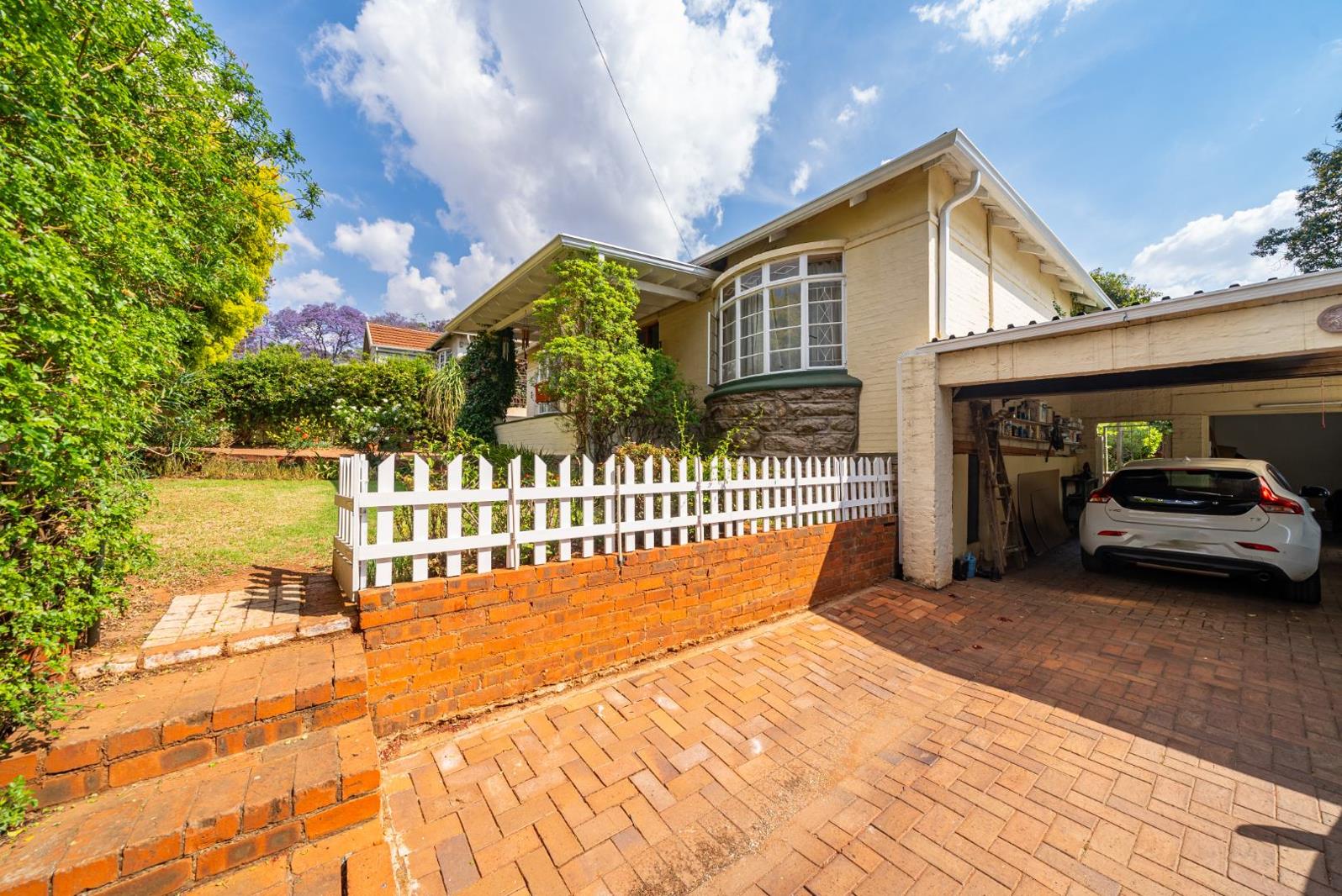 An automated gate opens to a double-door garage with additional parking space in front. The inviting entrance hall showcases high pressed ceilings that extend throughout the home, adding charm and a sense of spaciousness.