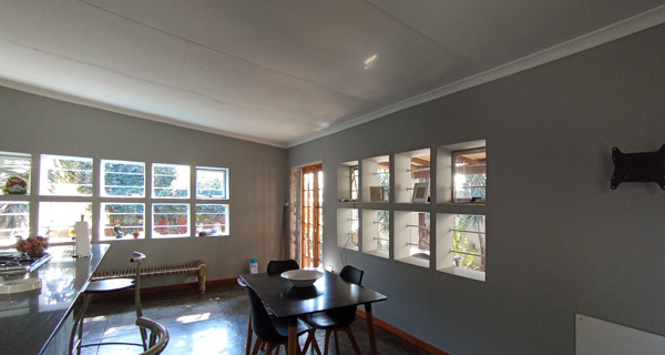 The residence comprises three well-proportioned bedrooms and two bathrooms. The bedrooms benefit from natural light, some featuring decorative ceilings and practical built-in wardrobes, offering ample storage. While the bathrooms are functional, they present an opportunity for modern updates to align with contemporary tastes. An additional flatlet provides versatile space, ideal for extended family, guests, or as a home office.