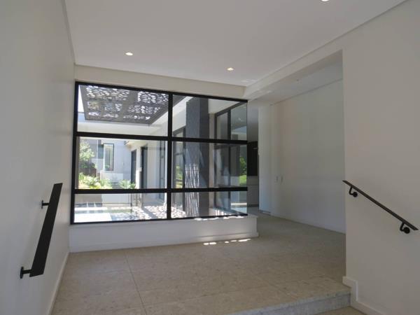 The living room opens up to an entertainer''s patio through stacking glass doors. Here, you can enjoy the convenience of a built-in gas braai while overlooking the sparkling pool and meticulously landscaped garden. The ground floor also features a guest suite with a full en-suite bathroom, an executive study, and an additional guest bathroom.