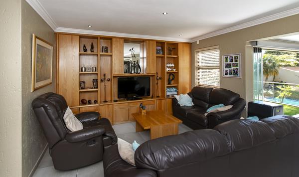 This home features an open-plan design, perfect for entertaining. The living areas complete with a fitted bar, seamlessly extend to the garden and a sparkling pool, ideal for gatherings with family and friends. The kitchen flows into the family room, lounge and dining area, creating a harmonious living space. Guest toilet. Winter/summer patio with built in braai and folding doors overlooking an immaculate garden and glass fenced sparkling swimming pool.