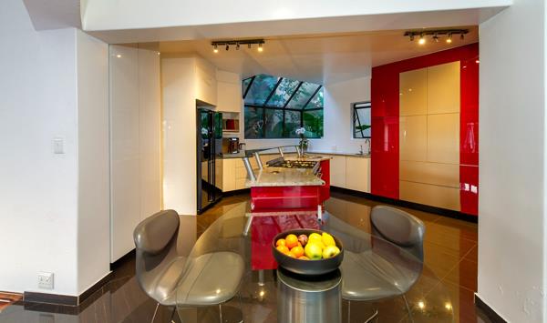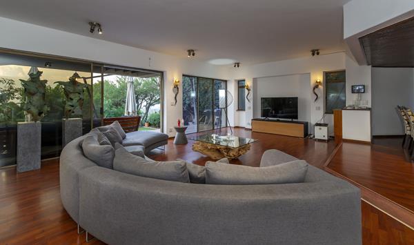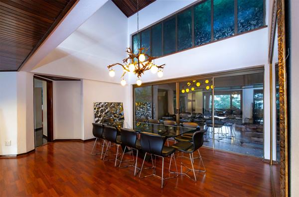 Renowned as Class A living, this extraordinary residence in Linksfield Ridge boasts unparalleled panoramic views. Nestled within a 24-hour guarded boomed street, this home exudes the essence of Africa. The entrance hall welcomes you with a solid wood sleeper stairway leading to the front door, while a guest loo offers convenience.