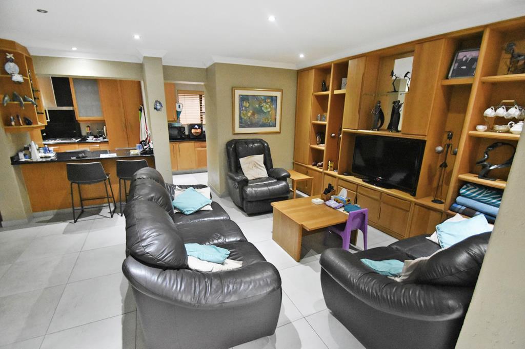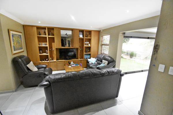 Enter through the hallway into the living areas which include a built-in bar, lounge, dining room and playroom. Open-plan, eat-in kitchen with granite tops. The seamless living area flows out to the garden and a sparkling, glass-fenced pool.