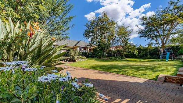 Perfect for entertaining, the dining room boasts a built-in bar, while the patio offers a built-in braai overlooking a manicured, park-like garden a true childrens paradise, complete with irrigation and space to play.