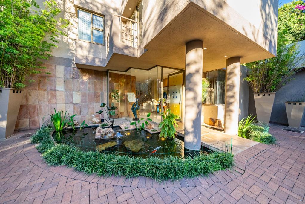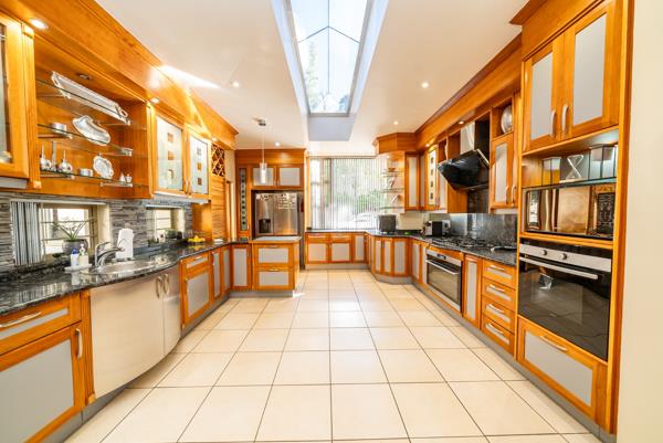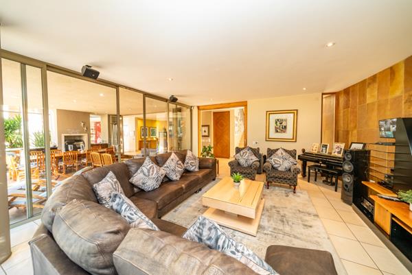 At the heart of the home is a spacious gourmet kitchen with a separate scullery, laundry room, and walk-in pantry. The kitchen flows effortlessly into two dedicated dining areasone of which opens with stacking doors onto a covered patio and both overlooking the tranquil koi fish pond with a gentle waterfall, ideal for both entertaining and intimate family breakfasts. The home offers two expansive lounges, one on either wing of the house, both flowing seamlessly through sliding doors onto a covered entertainment patio.