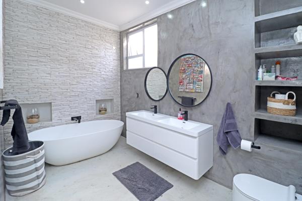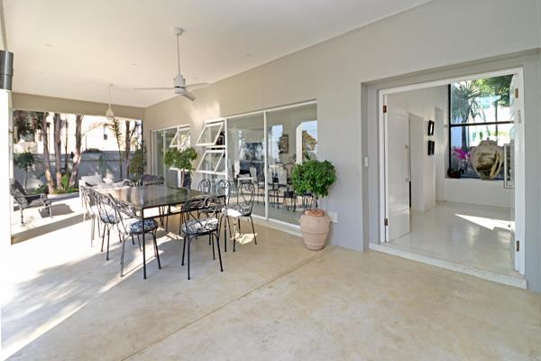 Accommodation includes five large north-facing bedrooms, each with air-conditioning, ceiling fans and built-in cupboards. There are 3.5 beautifully renovated bathrooms main en suite. The main suite boasts a private lounge, his-and-hers walk-in dressing rooms, a luxurious steam shower and an outdoor shower.