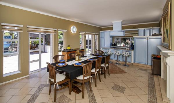 Located on a 3800 sqm piece of land, this incredible house has multiple entertainment areas, bar areas and lapas. Discover modern urban living in a thatch unit with a secure resort-like feel. Sparkling pool and scenic water features, plus koi ponds, and low low-maintenance garden give you the holiday ambience. Sit outside and soak up the sun or laze in the sun-drenched home that is nothing short of luxury at its finest. Lovely fireplace in main lounge adds to the warmth and grandeur of this home. All living areas and bedrooms are north-facing toward the pool. Main house kitchen with built-in cupboards and scullery area. Bedrooms are all spacious with built-in cupboards. Convenience of inverters and staff quarters.