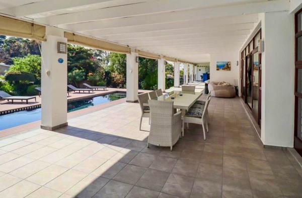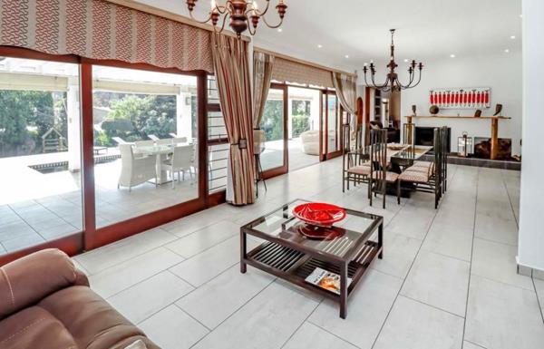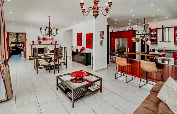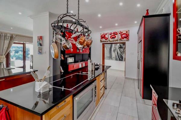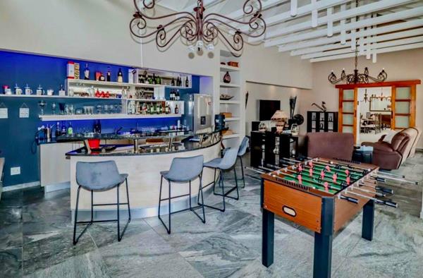 Discover the ultimate in secure and stylish living with this magnificent family home, perfectly positioned in a boomed-off street with 24-hour CAP patrols. Step inside the grand entrance hall and be immediately captivated by a seamless blend of elegance and comfort. The heart of the home is an open-plan living area, where a gourmet kitchen with a separate scullery effortlessly flows into the dining and living spaces. A striking double-volume ceiling with exposed trusses and a cozy fireplace creates a breathtaking focal point in the family room, which opens onto a large covered patio. This entertainer''s dream, complete with a built-in braai and bar, overlooks a sparkling pool and a lush, manicured gardenthe perfect backdrop for unforgettable gatherings.