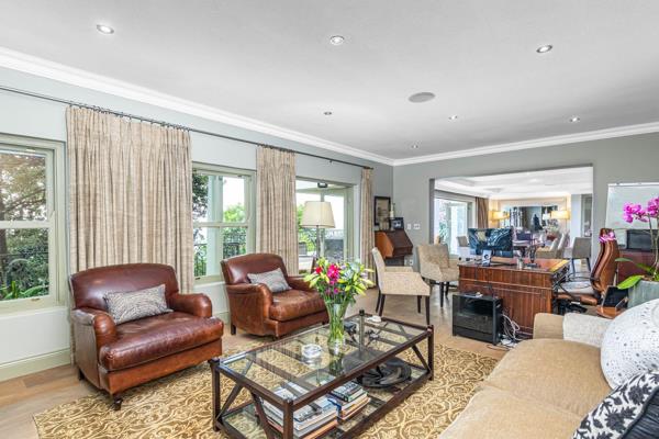 The main house features three elegantly appointed reception areas, each with doors that open to lush gardens, allowing natural light and refreshing breezes to flow seamlessly through the home. The open-plan entertainment area is a true masterpiece, complete with a rim-flow pool that creates a seamless transition between the indoors and the scenic outdoors. The indigenous garden provides a tranquil escape, while the covered patio offers the perfect setting for al fresco dining. An adjacent braai area and outdoor kitchen are ideally positioned to facilitate memorable gatherings and dining experiences under the stars.