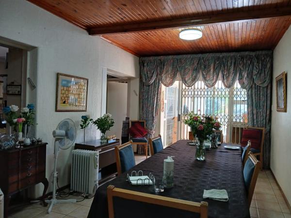 This lovely family home has eight spacious bedrooms with one full en-suite bathroom to the main bedroom and two other full bathrooms and one guest toilet. The house has a large eat in kitchen and a dining room - open plan lounge and playroom with ample entertaining space. The property also has a large two bedroom cottage with a separate bathroom to the main bedroom. These rooms can be closed off from the main house or function as part of the main house. The property also contains a separate wooden structure which has plumbing and electrical and would make a suitable staff quarters or home office. The property has a double carport and secure parking for a further six to eight cars. The house is equipped with 4 security beams and electric fencing. There is also a generator on site. The property has a large pool and covered patio with a built in braai and is ideal for entertaining. The garden has 2 storerooms which can be used for tools etc. This home''s configuration allows for many different living arrangements and is ideal for multigenerational living.