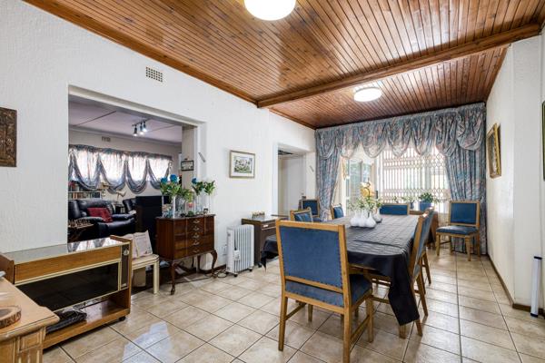 Entering the entrance hall into the lounge with a fireplace leads to the dining room and the enormous family room, all lead out to a covered patio with a built-in braai.