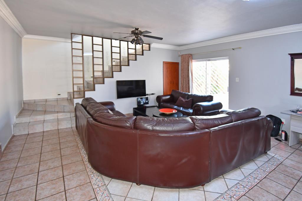 The property offers excellent cupboard space throughout, including a fully equipped laundry room with ample built-in cupboards, adding convenience to day-to-day living. For added functionality, the home includes a domestic living space, ideal for live-in staff or additional storage needs.