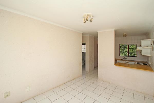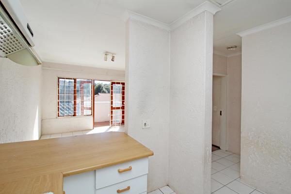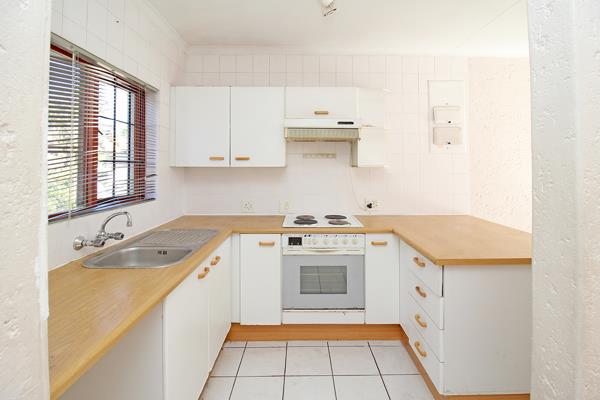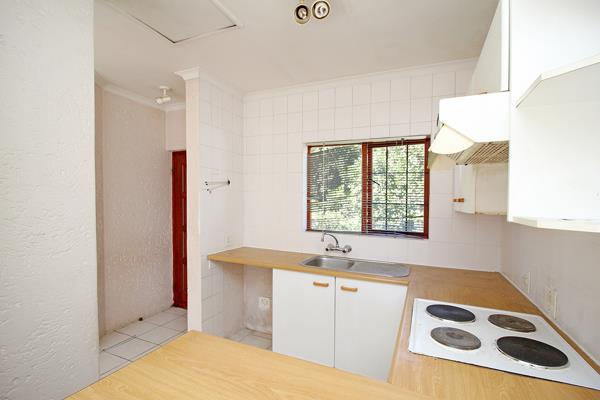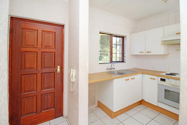 The unit features one bedroom, one bathroom, and an open-plan tiled lounge area that leads to a private balcony. The kitchen is compact yet functional, offering ample cupboard space. Additional amenities include a single covered parking space, with extra guest parking available. The complex boasts a pool area ideal for entertaining, complete with braai facilities, as well as 24-hour access-controlled security.