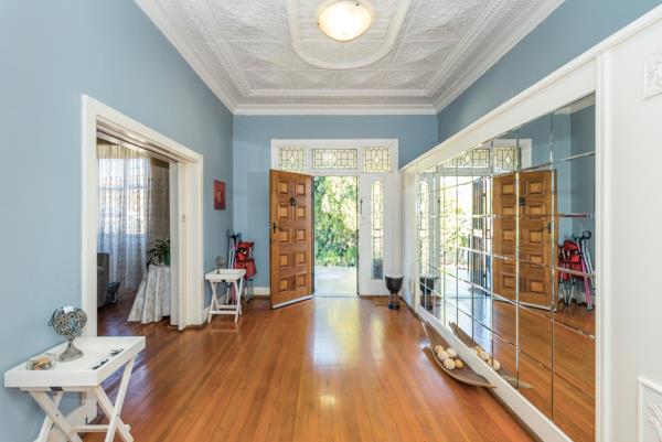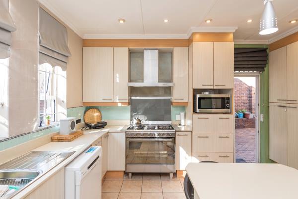 Outdoor living is equally impressive, with an inviting bar and entertainment area, a lapa for shaded relaxation, and a sparkling swimming pool perfect for hot summer days. For added convenience, a self-contained cottage with a shower and toilet provides accommodation options, while a staff toilet, outdoor laundry, and storeroom cater to practical needs seamlessly. Parking is a breeze with a two-car automated garage and a spacious three-car carport.