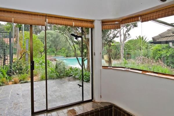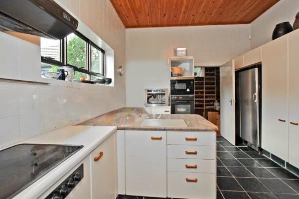 The grand entrance, featuring a majestic staircase, sets a sophisticated tone upon arrival. The ground floor boasts a spacious bedroom with built-in cupboards, opening to a beautiful, covered, sunlit patio overlooking a lush garden, a sparkling large pool, and a majestic tennis courtperfect for entertainment and relaxation. The lounge and dining area seamlessly connect to the patio, enhancing indoor-outdoor living. The chefs kitchen is a masterpiece, equipped with a German AEG electric stove, two AEG double ovens, a separate scullery with a double sink, laundry facilities, and an elegant custom-made wine room to house your collection of South African and international vintages. A well-appointed guest toilet adds functionality and style for visitors.