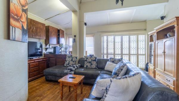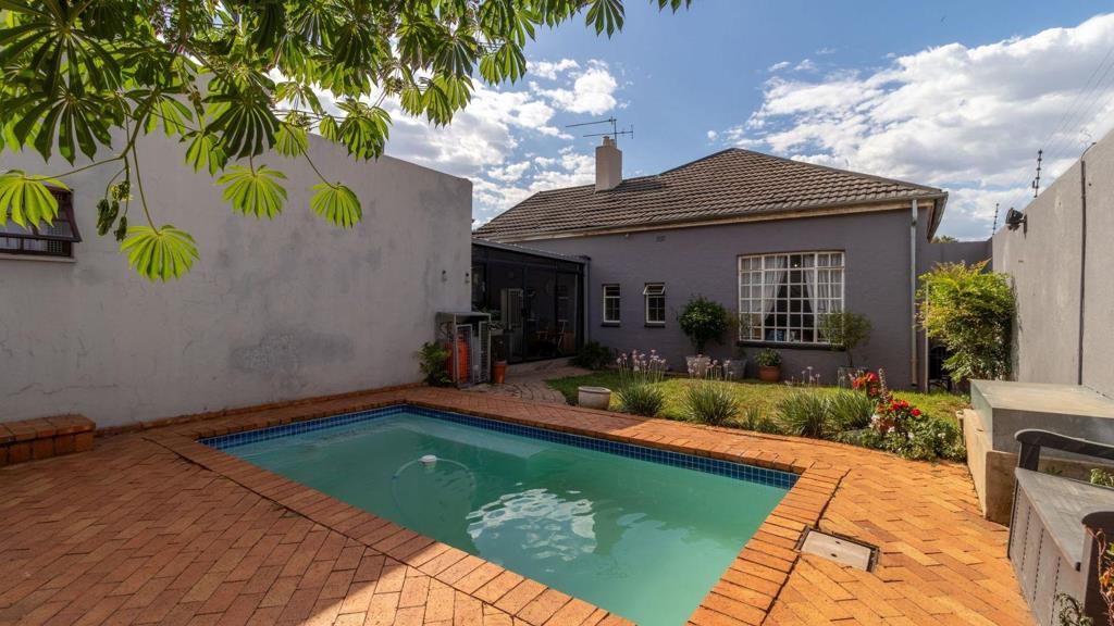 The property boasts a beautiful covered patio with a patio door that opens directly to a sparkling swimming pool and a braai area, perfect for outdoor entertaining.