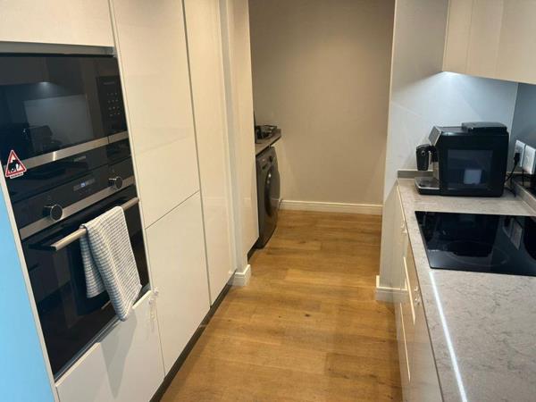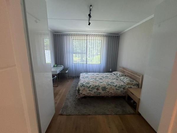 The sleek kitchen is fitted with premium Siemens appliances and features a separate scullery for added convenience. Flowing seamlessly from the kitchen, the open plan lounge and dining area extend to a covered patio with a built-in braai, leading to a private garden - ideal for entertaining or relaxing in a tranquil setting.