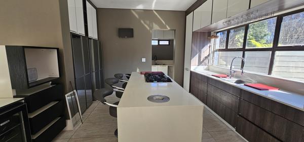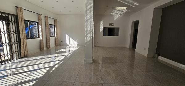 The heart of the home is its open-plan living area, where high ceilings and skylights flood the space with natural light. The seamless flow connects the lounge, dining area, and a dedicated childrens play zone, creating a warm and welcoming atmosphere for everyday living and family gatherings.