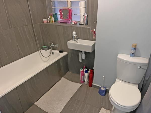 - Bathroom Neatly finished with a shower, toilet, and basin.