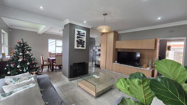 Step inside through the welcoming entrance hall and discover a beautifully designed interior, and featured lighting. You''ll find a spacious open lounge and dining room, all featuring modern tiled flooring, elegant crown molding, and special lighting that creates a warm ambiance. The open-plan layout ensures a great flow, perfect for entertaining or just chilling out. The living area boasts a cosy fireplace and a stylish built-in media center, while the kitchen comes with a handy pantry, ready for all your culinary adventures. The enclosed entertainment area adjacent to the living area can be completely opened to the outside braai area, with stacking doors creating a fluid flow between the two spaces. The perfect home to entertain family and friends!