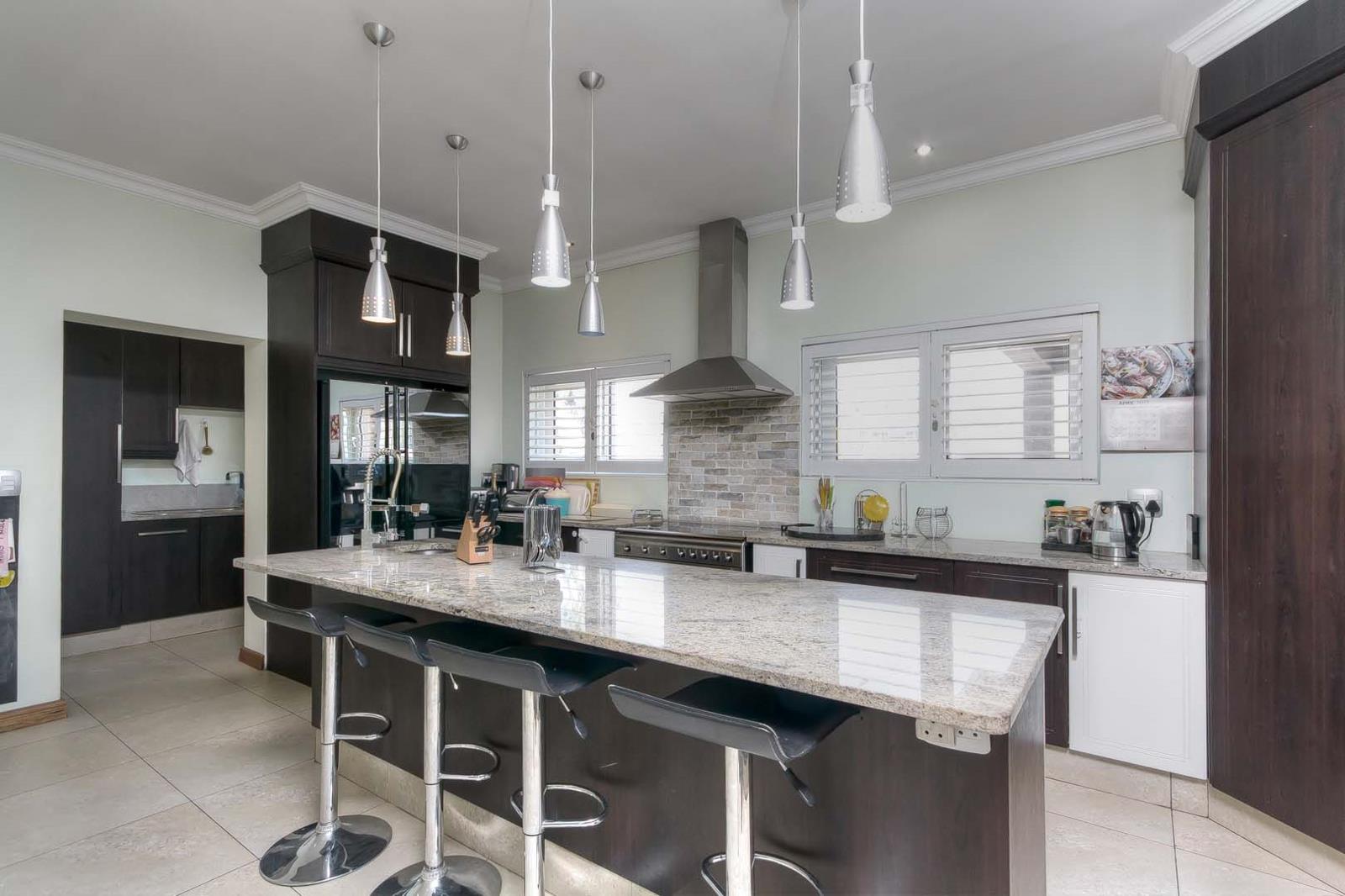 This stunning family home offers a perfect blend of style, comfort, and functionality. The welcoming entrance hall leads into a spacious open-plan lounge, dining area, and gourmet kitchen, designed for modern living. The lounge, with elegant glass stacking doors, opens into a sunlit family room, creating a seamless flow between spaces. The beautifully appointed kitchen boasts granite countertops, a breakfast bar, ample built-in cupboards, two pantry cupboards, a gas stove, oven and hob, extractor fan, and a separate scullery, making it a dream for any home chef.