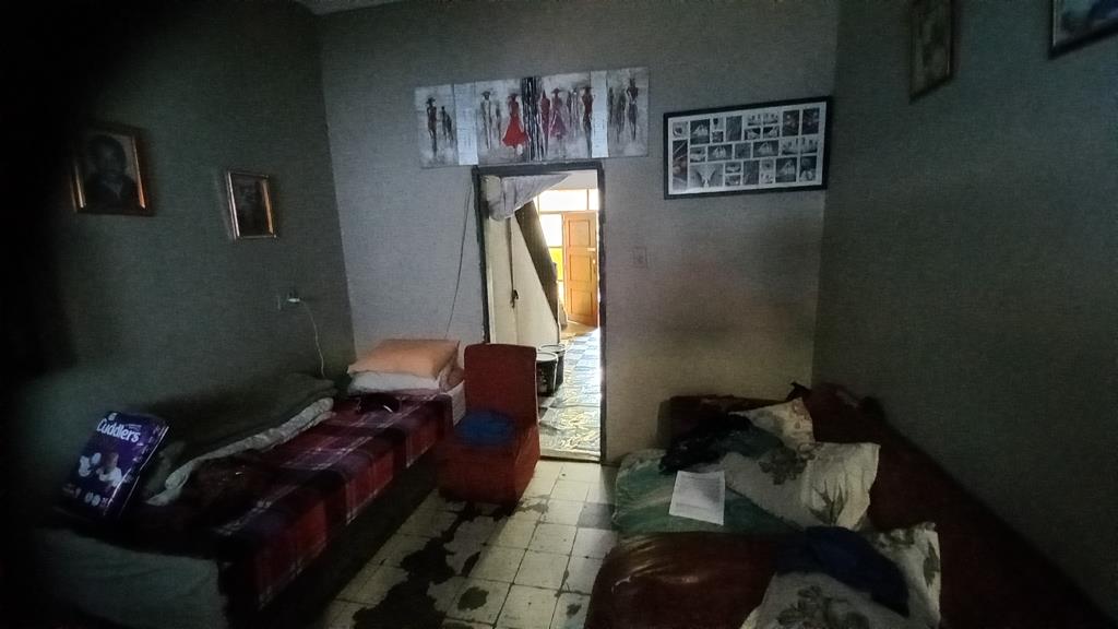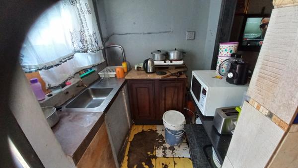 Features: 2 entrance halls, 2 wooden staircases, 2 lounges, 2 dining rooms, 2 storage cupboards under the stairs, 2 kitchens, 2 bathrooms, 4 bedrooms upstairs, wooden & tiled floors, courtyard, burglar bars, 2 front doors with security gates, 2 small garden areas in the front, 2 roomed cottage on the hill at the rear, outside toilet, basin & shower, rear garden is completely covered with 4 shacks, cul-de-sac