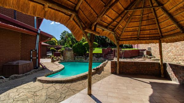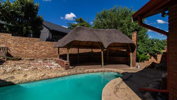 Outside, you''ll find a sparkling pool with a heating system, perfect for warm days, and a landscaped garden that enhances the home''s curb appeal. The property also features a double garage, double carport, and a storeroom, providing ample storage and parking space.