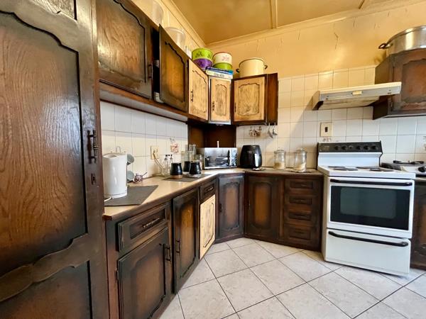 Accommodation includes three comfortable bedrooms, with one offering the convenience of an en-suite bathroom, alongside a second well-appointed bathroom. The property also benefits from domestic rooms, adding to its practical appeal. Outside, the expansive garden, complete with mature trees and a covered patio, offers a private retreat. While the pool currently requires attention, it holds significant potential to become a refreshing oasis. Three open parking spaces provide ample room for vehicles.
