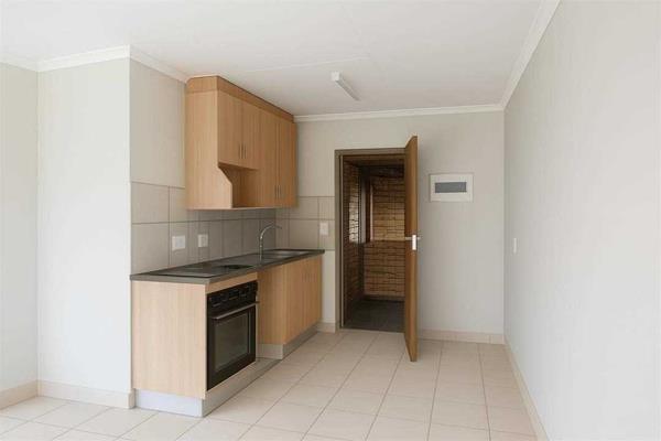 The open-plan layout seamlessly connects the kitchen and lounge area, creating a bright and relaxed atmosphere filled with natural light. Both bedrooms are well-sized and include built-in cupboards, while the bathroom is tastefully tiled for a clean, contemporary look.
