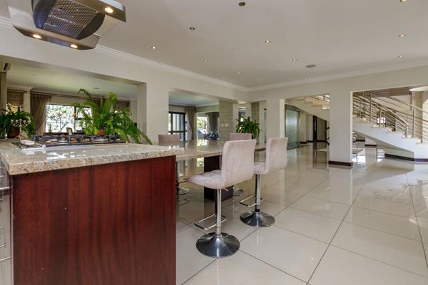 As you enter this exceptional property, you''re greeted by expansive and inviting reception areas, double staircase, rem flow water feature and featuring five distinct spaces that exude beauty and elegance. The grand double staircase adds a touch of opulence, leading to the upper levels with grace and style. The spacious shift kitchen and separate gallery pantry ensure both functionality and sophistication. Unwind in the cozy pyjama lounge or maintain your fitness routine in the well-equipped gym. Each of the 6 ensuite bedrooms is generously proportioned, boasting separate study rooms and balconies with captivating views. Separate outside office and double staff accommodation, a sparkling pool overlooks the serene landscape, complemented by a tranquil outside atriuman idyllic retreat for relaxation and contemplation. Three garages provide ample parking space, further enhancing the convenience and practicality of this extraordinary property. Additional amenities such as a storeroom and helpers'' accommodation cater to every need. This property epitomizes luxury living, offering a harmonious blend of comfort, style, and breathtaking vistas, accentuated by the grandeur of the double staircase and the serenity of the outside atrium.