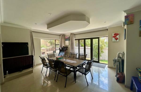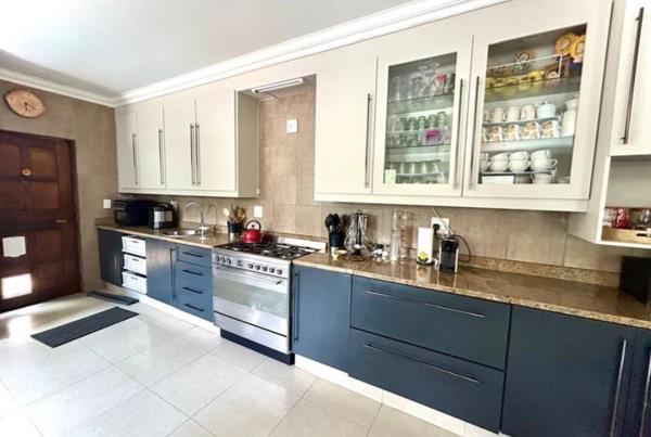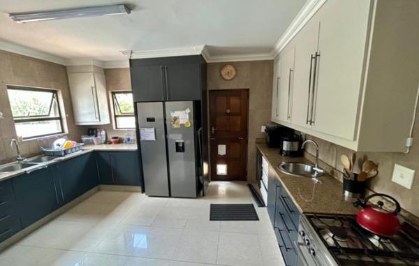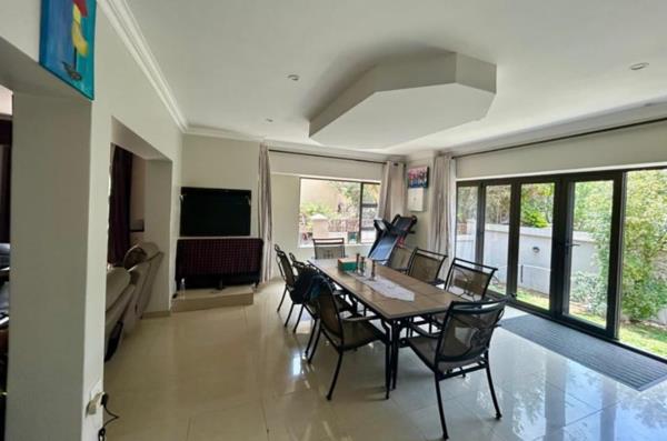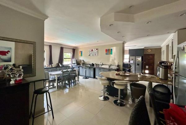 The open-plan layout creates a seamless flow between the kitchen, lounge, dining, and entertainment areas. With a built-in braai for cozy evenings and aluminum stacker doors leading to a low-maintenance garden and sparkling fenced pool, this space is ideal for creating cherished memories.